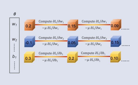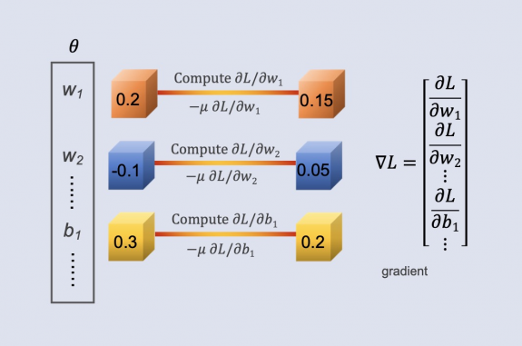 gradients, we then update the parameters to minimize the loss function, typically through
